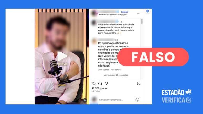 Outra afirmação do vídeo é a de que o alumínio presente nas vacinas é neurotóxico, o que também não é verdadeiro. A pediatra Flávia Bravo explica que a quantidade de alumínio presente em parte dos imunizantes é muito baixa e incapaz de causar malefícios à saúde.