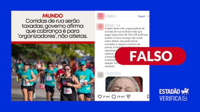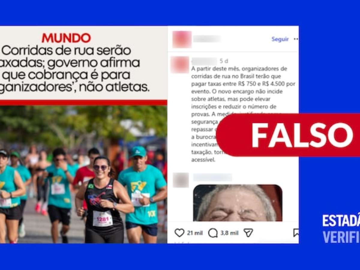 O que estão compartilhando: que o governo Lula vai começar a taxar corridas de rua a partir deste mês. Segundo postagens, a cobrança ficaria entre R$ 750 e R$ 4.500 e seria direcionada aos organizadores de eventos da modalidade.