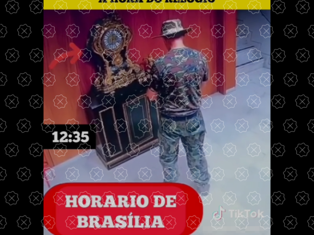 Publicações nas redes têm compartilhado um vídeo em que um homem manuseia os ponteiros de um relógio exposto no terceiro andar do Palácio do Planalto para sugerir que havia pessoas no local antes de manifestantes bolsonaristas invadirem os prédios dos Três Poderes na tarde de 8 de janeiro. A tese, que tenta provar a existência de "infiltrados" de esquerda nos atos, não se sustenta porque: