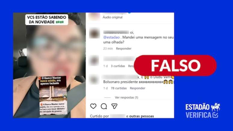 Saiba mais: Viralizou no Instagram o vídeo de um homem comentando a investigação contra o banco Master. Ele filma a si mesmo dentro de um carro e diz que o banco sempre foi uma fraude, pois teria sido criado com a finalidade de lavar dinheiro para o PT, que ele chama de quadrilha. Postado no dia 12 de abril, a publicação ultrapassa 450 mil visualizações. Procurado, o autor do vídeo não retornou o contato do Verifica até o momento.