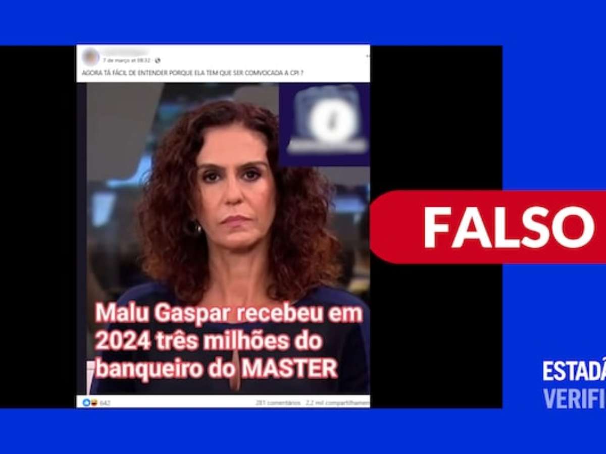 É falso que Malu Gaspar tenha recebido R$ 3 milhões do Banco Master