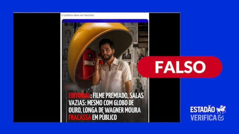 O que estão compartilhando: postagem afirma que o filme O Agente Secreto, de Kleber Mendonça Filho, tem salas vazias e fracassa em público, mesmo após faturar o Globo de Ouro.