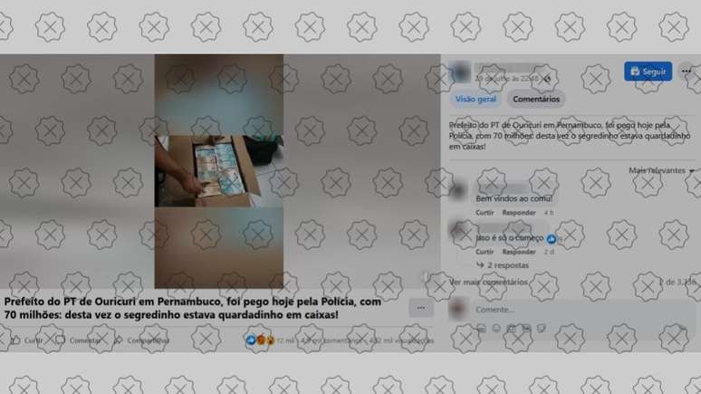 Não é verdade que o prefeito de Ouricuri (PE), Francisco Ricardo Soares Ramos, seja filiado ao PT nem que policiais apreenderam R$ 70 milhões guardados por ele em caixas, como alegam publicações nas redes. Ramos é filiado ao PSDB, não há registros de que tenham sido apreendidos quaisquer valores em posse dele, e o vídeo difundido pelas peças de desinformação contém imagens de uma operação realizada pela Polícia Federal no estado de Sergipe, não relacionada a Ramos nem ao município de Ouricuri.