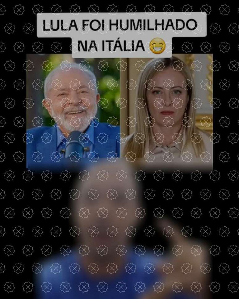 Publicações nas redes sociais fazem crer que a primeira-ministra da Itália, Giorgia Meloni, não se reuniu com o presidente Luiz Inácio Lula da Silva durante a recente viagem do mandatário brasileiro ao país europeu. Ambos se reuniram no Palácio Chigi, sede do governo italiano na quarta-feira (21), mesma data da publicação das peças desinformativas. A confirmação do encontro ocorreu na terça (20), quando Lula estava em voo a caminho da Itália.
