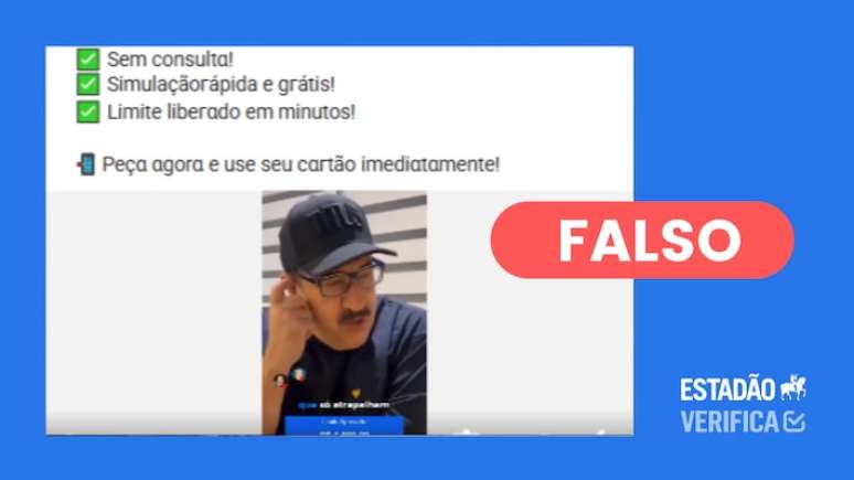 O que estão compartilhando: que o apresentador Carlos Massa, o Ratinho, divulgou o cartão de crédito Blue Bird, que liberaria até R$ 5.000 de limite até para pessoas que estão com o "nome sujo".