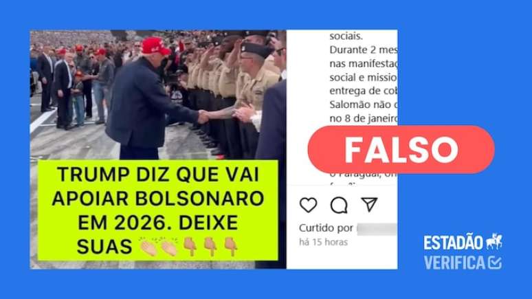Saiba mais: No dia 16 de fevereiro, Trump postou no Instagram um vídeo da sua aparição na Daytona 500, uma das corridas automobilísticas do campeonato Nascar Cup Series. Alguém pegou essa gravação e inseriu nela o seguinte texto: "Trump diz que vai apoiar Bolsonaro em 2026".