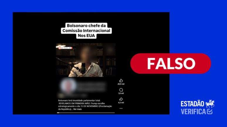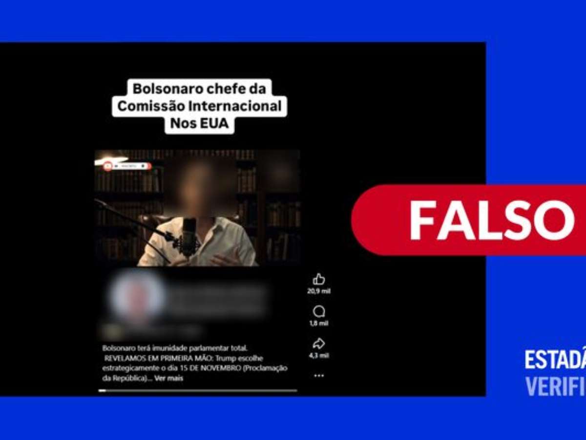 O que estão compartilhando: que o presidente dos Estados Unidos, Donald Trump, teria decidido nomear o ex-presidente Jair Bolsonaro (PL) como chefe da comissão internacional Global Freedom of Speech Initiative. Isso garantiria ao brasileiro "imunidade parlamentar total". A posse seria em 15 de novembro e o Supremo Tribunal Federal (STF) teria um prazo de 30 dias para reconsiderar os processos contra Bolsonaro.