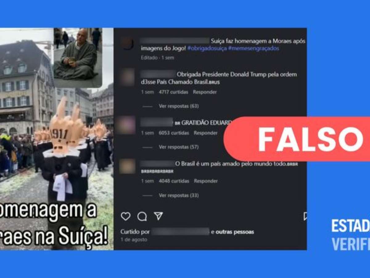 O Estadão Verifica investigou e concluiu que: é falso. O vídeo mostra o Fasnacht, o maior carnaval da Suíça que ocorre anualmente na cidade da Basileia. A edição deste ano foi realizada nos dias 10, 11 e 12 de março, meses antes de Moraes fazer o gesto obsceno. A gravação mostra o desfile do grupo Central Club Basel (CCB) que abordou a falta de diálogo. O dedo médio simbolizaria a falta de diálogo entre líderes mundiais. Moraes não foi citado.