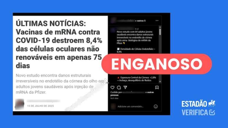O Estadão Verifica investigou e concluiu que: é enganoso. Especialistas e órgãos de saúde ouvidos pelo Verifica explicaram que o estudo em questão não permite afirmar que a vacina foi o que causou uma alteração nos olhos dos pacientes. O Ministério da Saúde informou que monitora eventos adversos e que até o momento não foi identificado nenhum alerta quanto a danos oculares relacionados à vacinação. A Pfizer disse que a vacina contra a covid-19 é segura e tem o respaldo de diferentes agências regulatórias pelo mundo, como Food and Drug Administration (FDA), dos Estados Unidos, European Medicines Agency (EMA), da União Europeia, e Agência Nacional de Vigilância Sanitária (Anvisa), do Brasil.