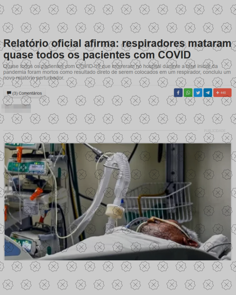 Textos desinformativos têm distorcido um artigo publicado no Journal of Clinical Investigation para afirmar que os respiradores teriam sido responsáveis pela morte de "quase todos os pacientes com Covid-19". Para fazer essa alegação, os posts usam um trecho do estudo que aponta que os enfermos submetidos à ventilação mecânica estavam mais suscetíveis a pneumonias bacterianas. Especialistas consultados pelo Aos Fatos apontaram que a interpretação é equivocada, já que desconsidera que doentes em estado grave não sobreviveriam sem a intervenção de um respirador em primeiro lugar.