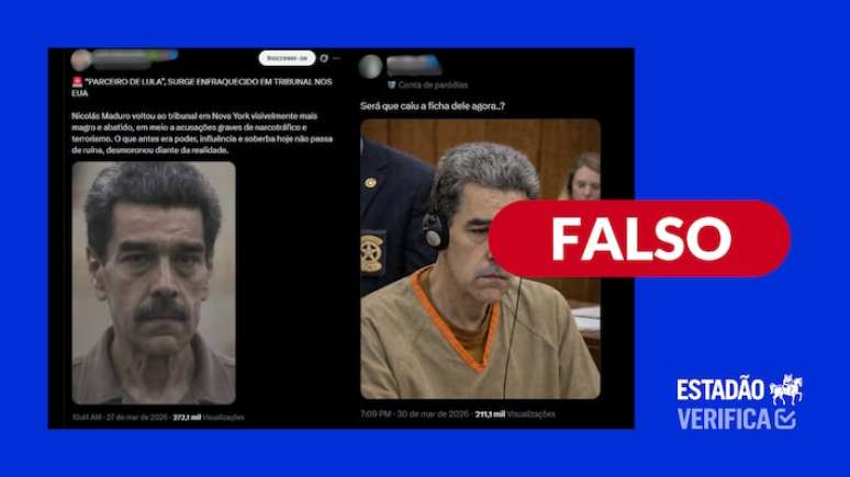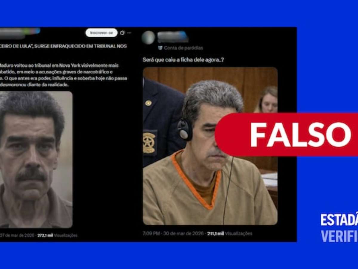 O Estadão Verifica checou e concluiu que: é falso. As imagens foram criadas com inteligência artificial. Há versões das fotos, menos recortadas, em que é possível visualizar a marca d'água do gerador de inteligência artificial do Google ou erros que indicam uso de IA. Maduro esteve em uma audiência no tribunal federal dos EUA, onde fotografias e transmissões, em geral, não são permitidas.
