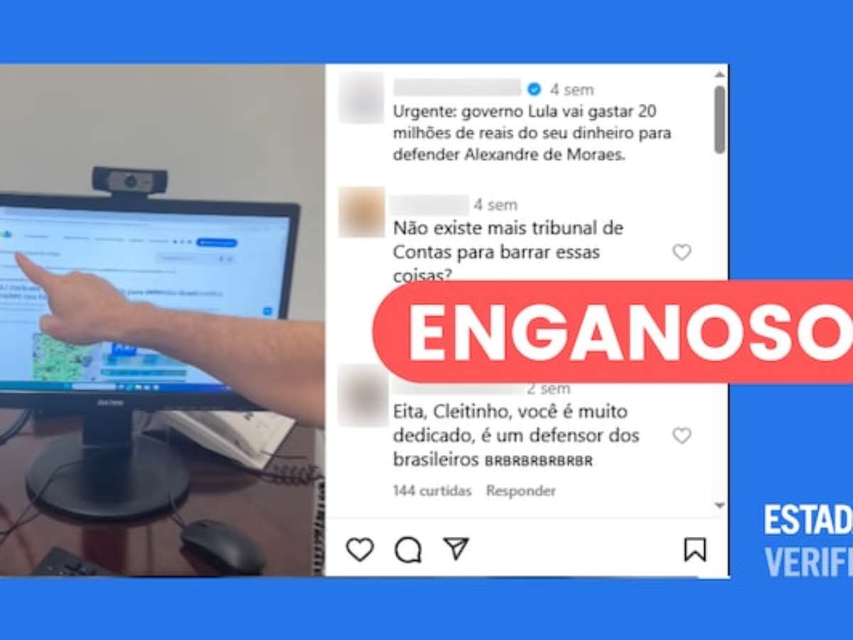 O que estão compartilhando: que o governo brasileiro vai gastar R$ 20 milhões de dinheiro público para defender o ministro do Supremo Tribunal Federal (STF) Alexandre de Moraes contra sanções impostas pelo governo dos Estados Unidos.