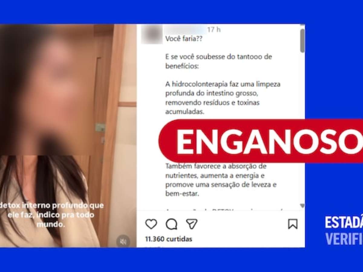 O Estadão Verifica investigou e concluiu que: é enganoso. Não há evidências científicas de que a hidrocolonterapia - lavagem intestinal a partir da introdução de uma cânula pelo ânus - traga benefícios à saúde. A lavagem intestinal deve ser feita apenas em situações muito específicas, como no preparo para exames de colonoscopia e investigação de endometriose, antes de cirurgias intestinais e em casos selecionados de constipação intestinal grave.