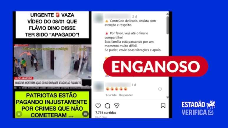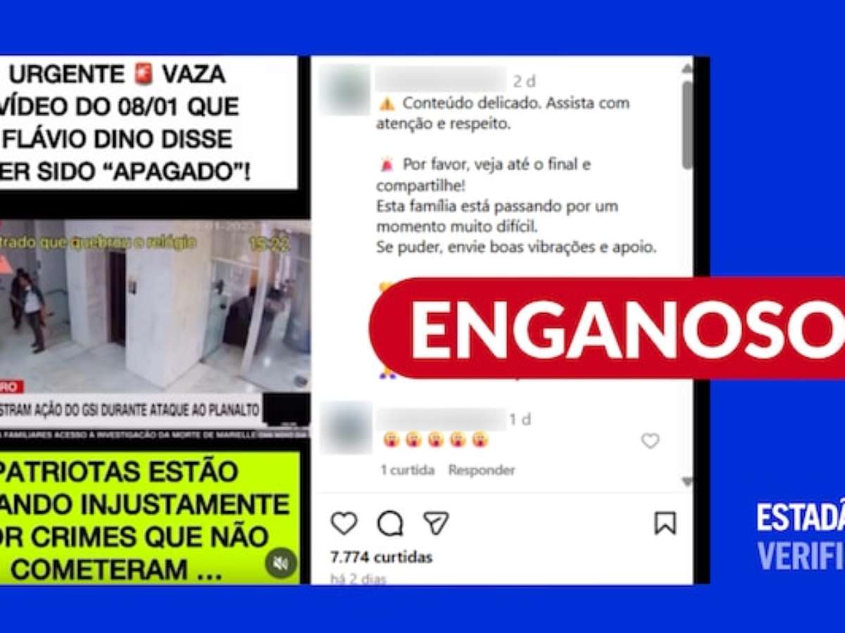 O Estadão Verifica investigou e concluiu que: é enganoso. As imagens que Dino disse terem sido apagadas no dia 8 de janeiro de 2023 eram do circuito interno de câmaras do Ministério da Justiça, pasta que ele chefiava na época. As cenas que aparecem no vídeo viral não foram "vazadas": elas foram disponibilizadas pelo próprio governo federal após os ataques às sedes dos Três Poderes.