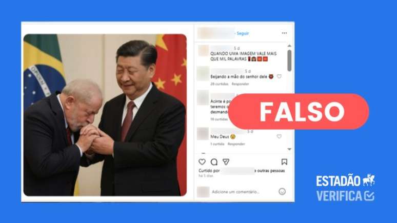 Imagem em que Lula beija mão de Xi Jinping foi criada por IA