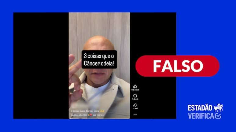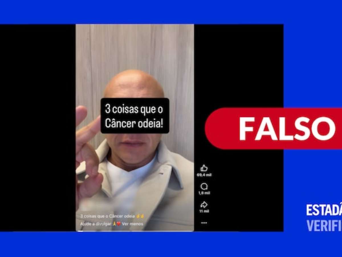 Saiba mais: o vídeo tem a seguinte inscrição na tela: "3 coisas que o câncer odeia". Logo no começo, o autor diz que casos de câncer explodiram no mundo "por causa das vacinas", em referência aos imunizantes contra a covid-19. Desde 2021, o Estadão Verifica mostrou diversas vezes que a associação entre vacinas e câncer é falsa (aqui, aqui, aqui, aqui e aqui).