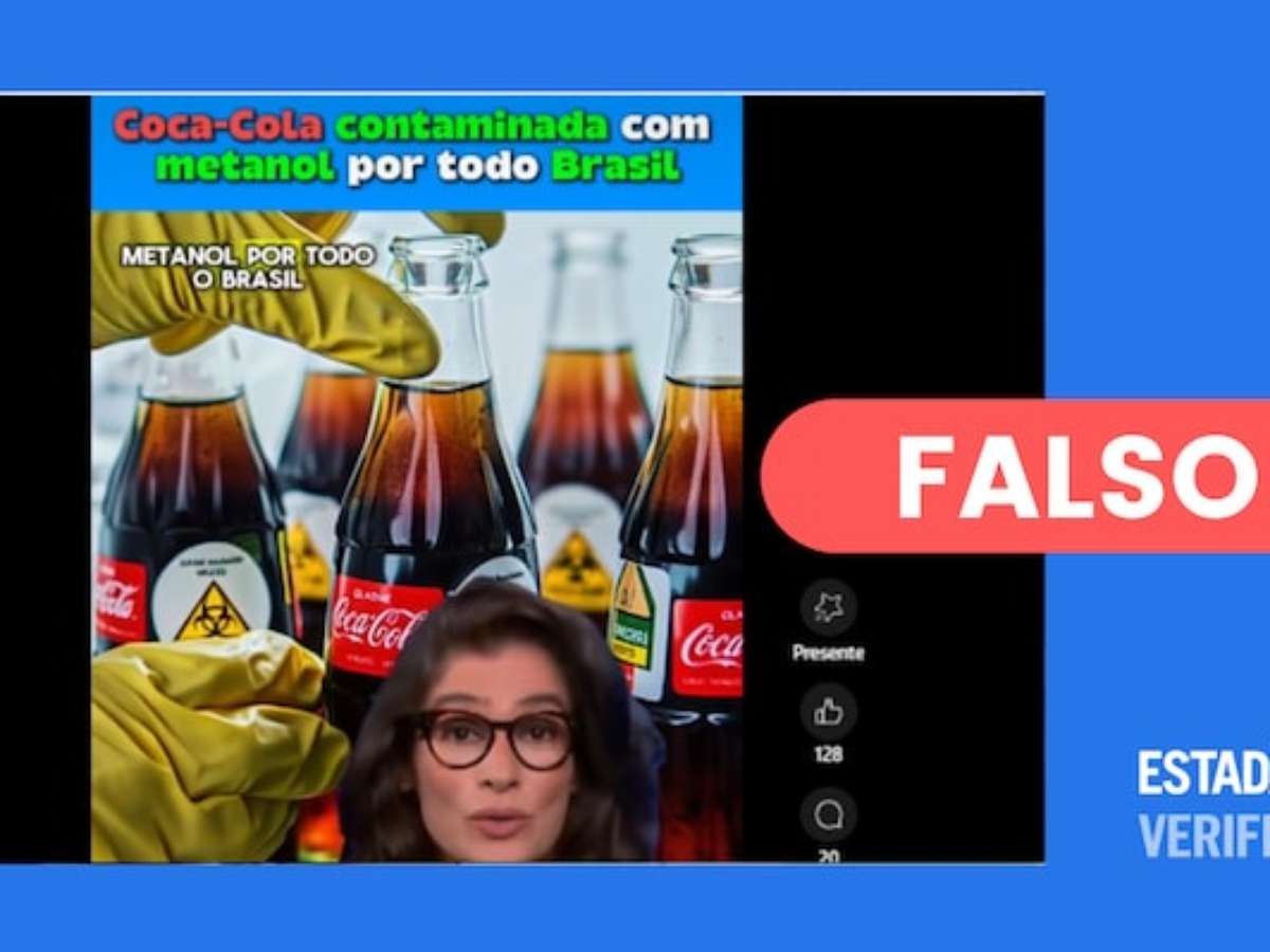 O que estão compartilhando: que o refrigerante da marca Coca-Cola estaria sendo adulterado com metanol. O vídeo é narrado por uma figura parecida com a da apresentadora Renata Vasconcellos, do Jornal Nacional.