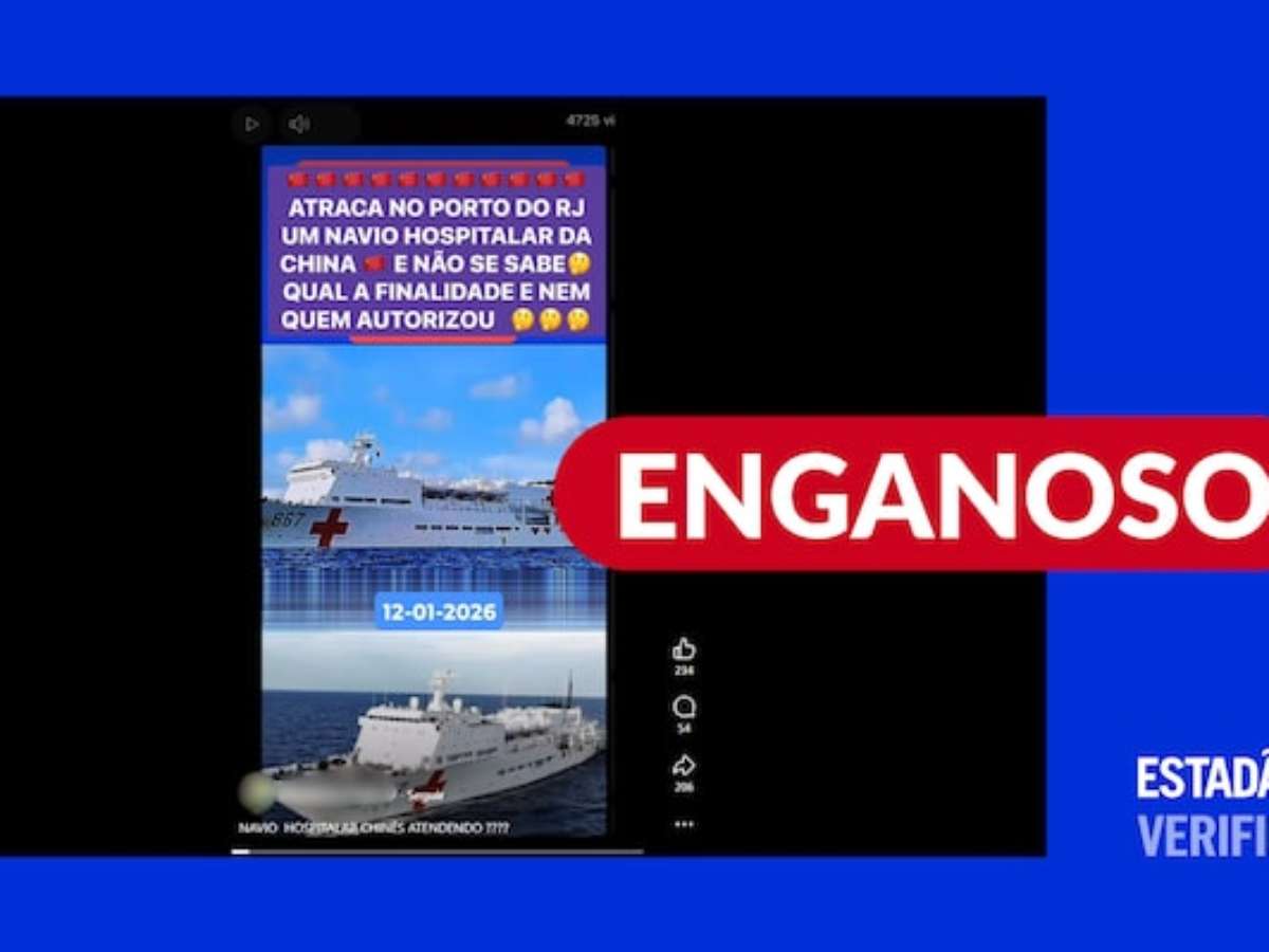 Saiba mais: O navio-hospital Ark Silk Road, que pertence à Marinha da China, atracou no Píer de Mauá, no Rio, em 8 de janeiro, onde permanece até esta quinta-feira, 15. A presença da embarcação motivou o compartilhamento de teorias da conspiração e de desinformação nas redes sociais.