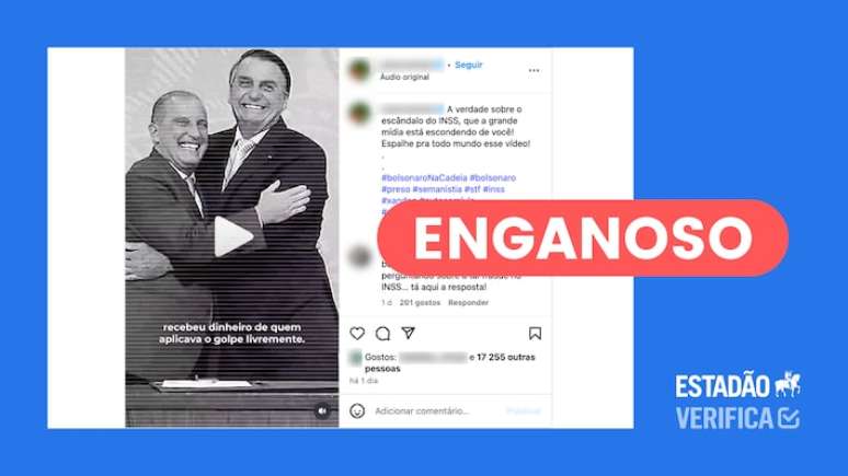 A publicação enganosa afirma que, em 2019, Jair Bolsonaro "abriu a porta para um roubo histórico contra os aposentados". Desde que a Operação Sem Desconto foi deflagrada, em abril, alegações falsas e enganosas começaram a circular nas redes sociais em uma guerra de narrativas entre bolsonaristas e apoiadores do atual presidente sobre quem é o responsável pela fraude.