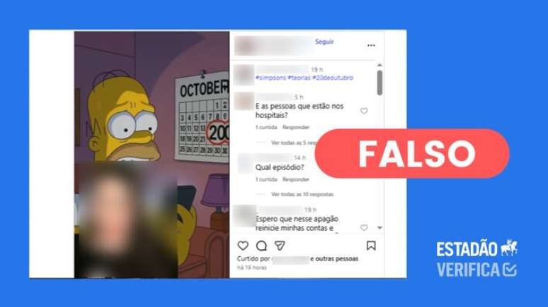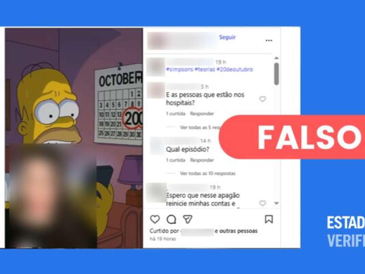 O que estão compartilhando: que a série animada Os Simpsons teria previsto um apagão cibernético no Brasil no dia 20 de outubro de 2025, às 3h17 da madrugada, que deixaria o País inteiro incomunicável.