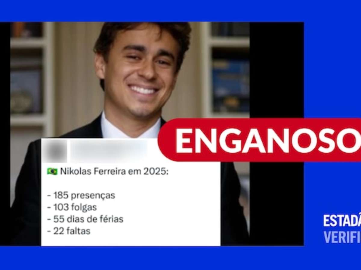 O Estadão Verifica investigou e concluiu que: é enganoso. Foram, ao todo, 127 dias de sessões em 2025, seja em Plenário ou em comissões. Nikolas só não marcou presença em um desses dias: 14 de maio. Nesta data, ele faltou, sem justificativa, a uma audiência pública da Comissão de Educação. Ou seja, o parlamentar estava presente em 99,2% dos dias em que houve sessões na Câmara dos Deputados. Vale dizer que todos os deputados gozam de 55 dias de recesso.