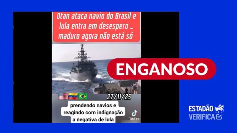 Saiba mais: O conteúdo que viralizou no TikTok e no Facebook distorce informações de uma operação verdadeira para afirmar, sem provas, que a Otan teria atacado uma embarcação do Brasil. O ataque teria ocorrido num momento em que o governo Lula é pressionado a reconhecer facções criminosas como o PCC e o Comando Vermelho como organizações terroristas.