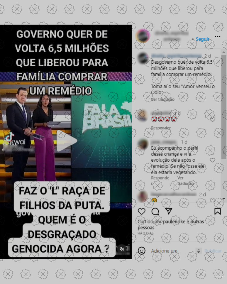 Publicações com o conteúdo enganoso acumulavam cerca de 111 mil visualizações no Kwai e TikTok, além de centenas de curtidas em plataformas como Facebook e Instagram nesta quinta-feira (22).