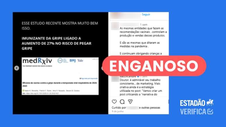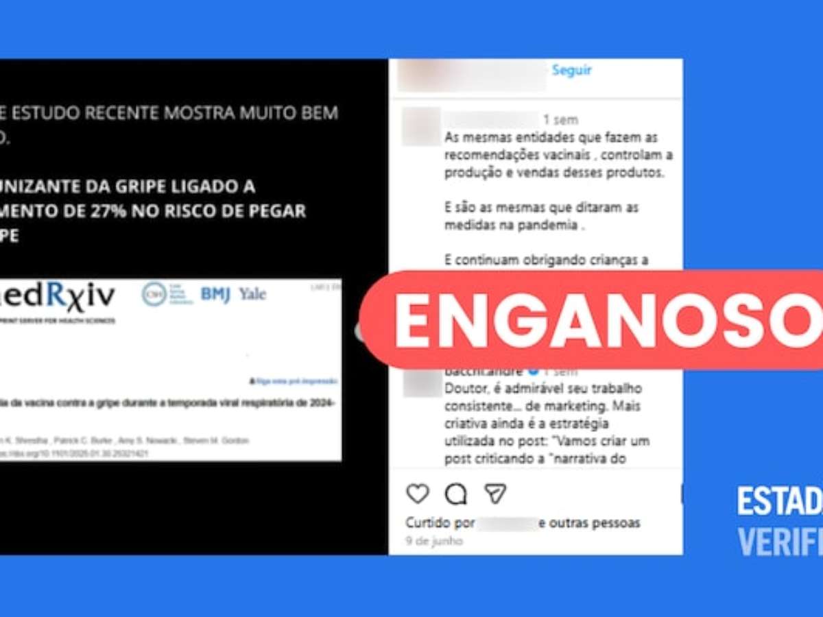 O Estadão Verifica investigou e concluiu que: é enganoso. Especialistas consultados pela reportagem ressaltam que a vacina contra a gripe previne formas graves da doença e é importante para proteção da população. O autor da publicação faz leituras distorcidas dos três estudos compartilhados. Um dos artigos divulgados, por exemplo, foi realizado apenas com profissionais de saúde - contexto omitido na publicação. Conforme já explicado pelo Comprova, coalizão da qual o Verifica faz parte, os próprios autores informaram que o estudo não conclui que a vacina aumenta o risco de gripe.