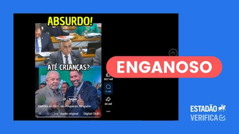 Um corte da fala do senador (assista na íntegra a partir de 2h13min06seg) compartilhado por uma página no Facebook sugere que os descontos citados pelo parlamentar teriam sido roubados. No entanto, não há provas disso. Na legenda, o autor do conteúdo escreveu: "Ladrões do INSS não Pouparam Ninguém". A postagem acumula 1 milhão de visualizações.