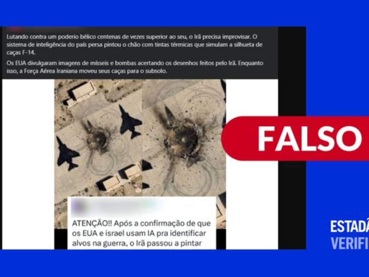 O Estadão Verifica investigou e concluiu que: é falso. A imagem viral foi criada por inteligência artificial, segundo análise do SynthID, ferramenta do Google que detecta conteúdos gerados com tecnologias de IA da empresa. O uso de desenhos como iscas militares não foi confirmado pelos países envolvidos no conflito. Um especialista ouvido pela reportagem destaca que alvos falsos são historicamente usados em conflitos armados, mas ressalta que desenhos simples no solo dificilmente enganariam sensores modernos.
