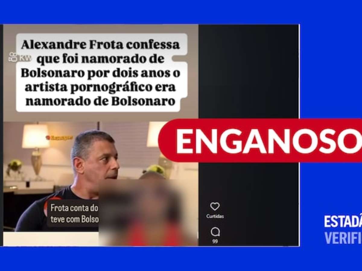 Saiba mais: postagens virais no Instagram compartilham um vídeo descontextualizado de Frota para alegar que o ex-deputado federal admitiu ter namorado Bolsonaro por dois anos. "Artista pornográfico era namorado de Bolsonaro", escreve a legenda sobreposta às imagens, com mais de 17 mil curtidas.