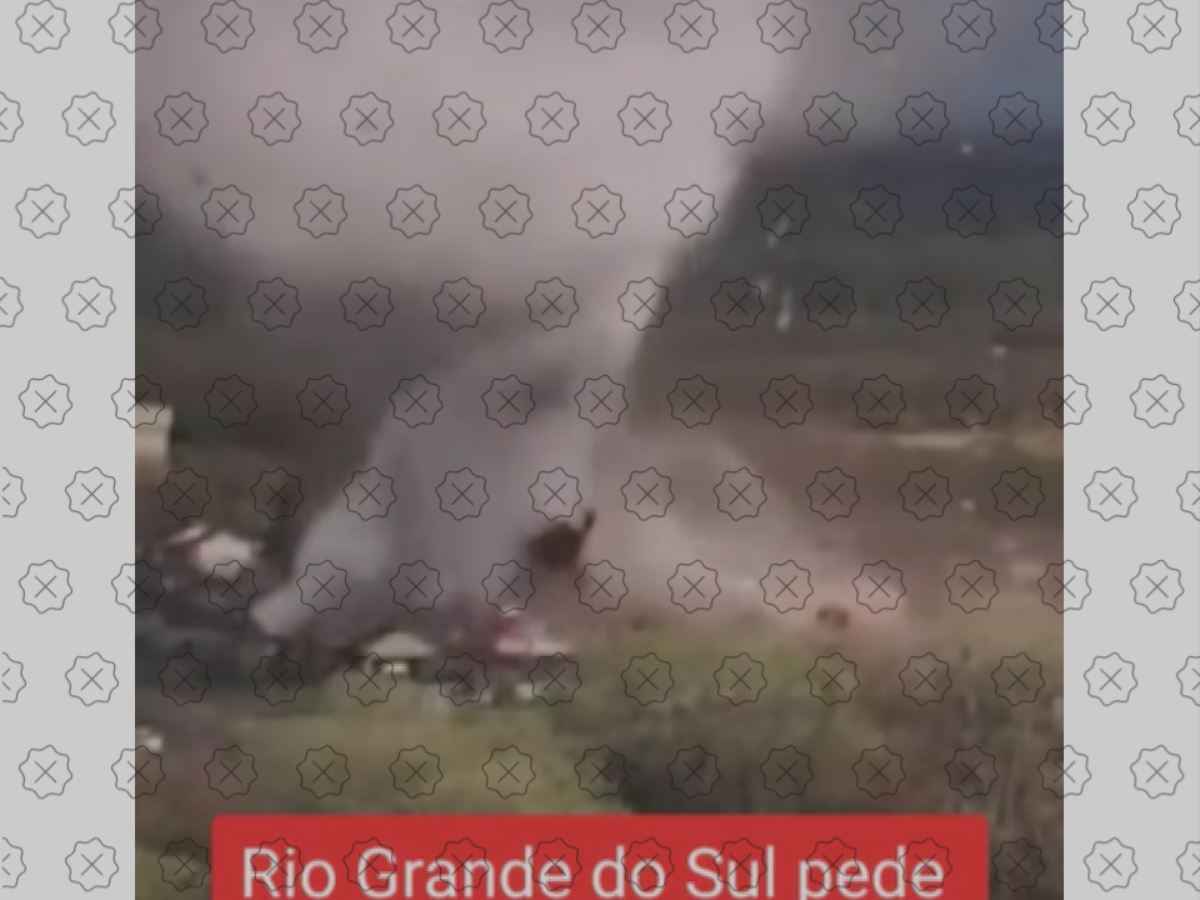 Outro vídeo que tem sido usado como suposto registro do ciclone no Rio Grande do Sul mostra uma escadaria sendo atingida por uma forte ventania. O Aos Fatos não encontrou informações sobre a gravação original, mas a mesma filmagem está disponível em um compilado de desastres naturais publicado em abril de 2020.