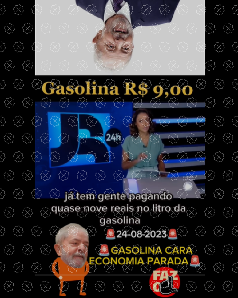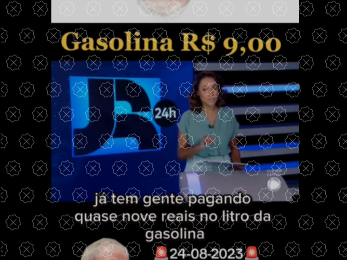 Uma notícia veiculada no programa Boletim JR 24h, da Record, do dia 7 de maio de 2022, que comenta o aumento do preço da gasolina nos postos de combustíveis do Brasil pela quarta semana consecutiva, tem circulado nas redes como se fosse atual para dar a entender que o valor ajustado teria acontecido no dia 24 de agosto de 2023 e, portanto, durante o governo do presidente Luiz Inácio Lula da Silva (PT), o que é falso.