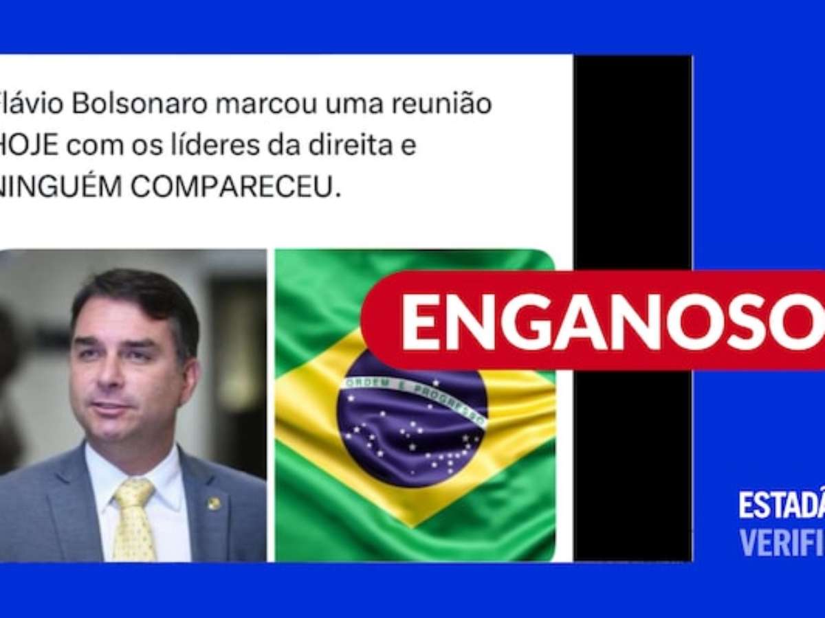 O que estão compartilhando: que nenhum líder da direita teria comparecido à reunião marcada pelo senador Flávio Bolsonaro (PL-RJ) nesta segunda-feira, 8.