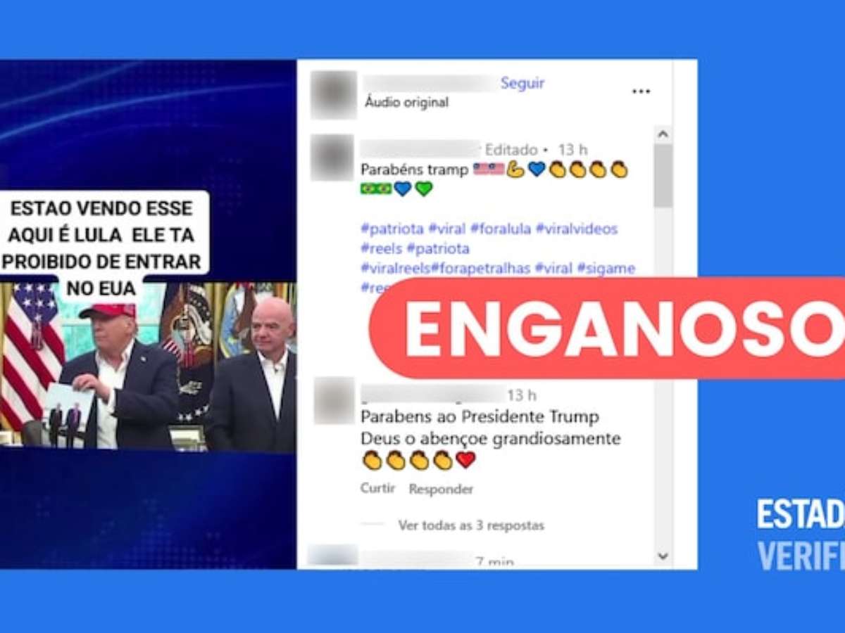 O Estadão Verifica investigou e concluiu que: é enganoso. O post verificado distorce um trecho da transmissão da entrevista coletiva em que Trump anunciou a data e o local do sorteio que vai definir os grupos da Copa do Mundo de 2026. Na ocasião, o presidente americano mostrou uma foto impressa em que aparece ao lado do presidente da Rússia, Vladimir Putin. Ele afirmou ter recebido a imagem de Putin e sugeriu a possibilidade de o líder russo comparecer ao evento esportivo. O episódio foi noticiado por veículos de imprensa nacionais e internacionais (aqui, aqui e aqui). Não há qualquer menção ao nome de Lula na gravação.