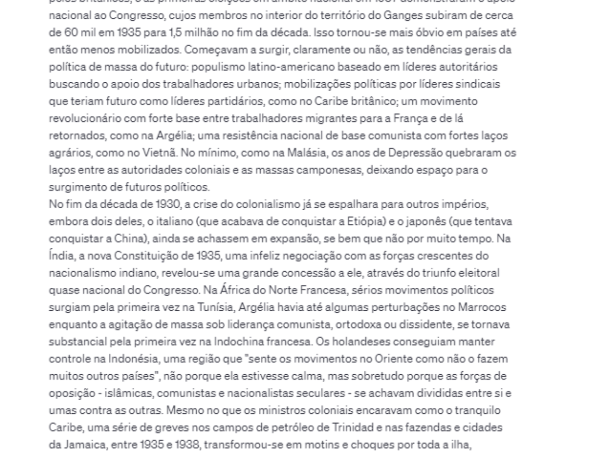 ChatHobsbawm. Software diz ter escrito parágrafos de uma edição de 1998 do livro "Era dos Extremos" (Reprodução)