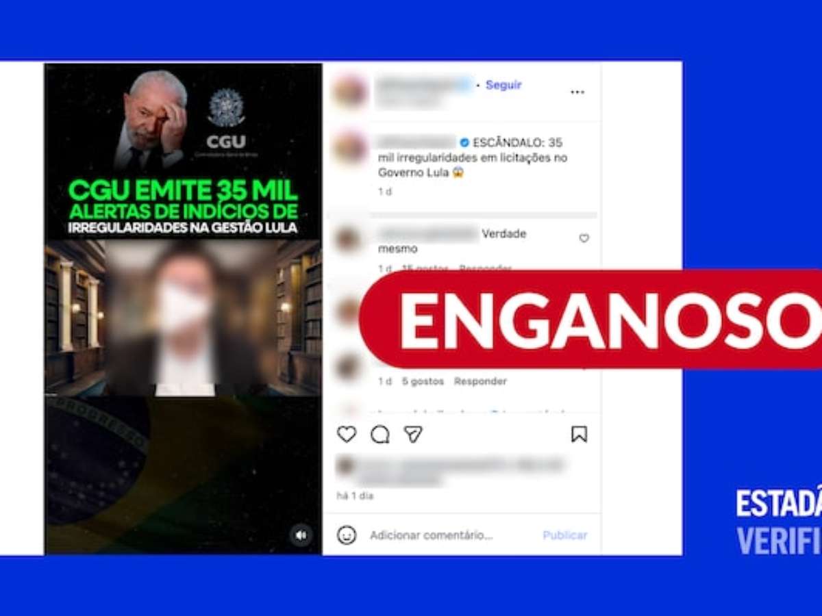 O Estadão Verifica investigou e concluiu que: é enganoso. O autor do vídeo distorce uma notícia do portal Metrópoles sobre alertas emitidos por uma ferramenta de inteligência artificial da CGU que identifica inconsistências em licitações. Foram 34.733 alertas, mas isso não significa que tenha ocorrido fraude em todos os casos. A CGU informou ao Metrópoles que cada alerta precisa ser verificado pelas equipes de auditoria.