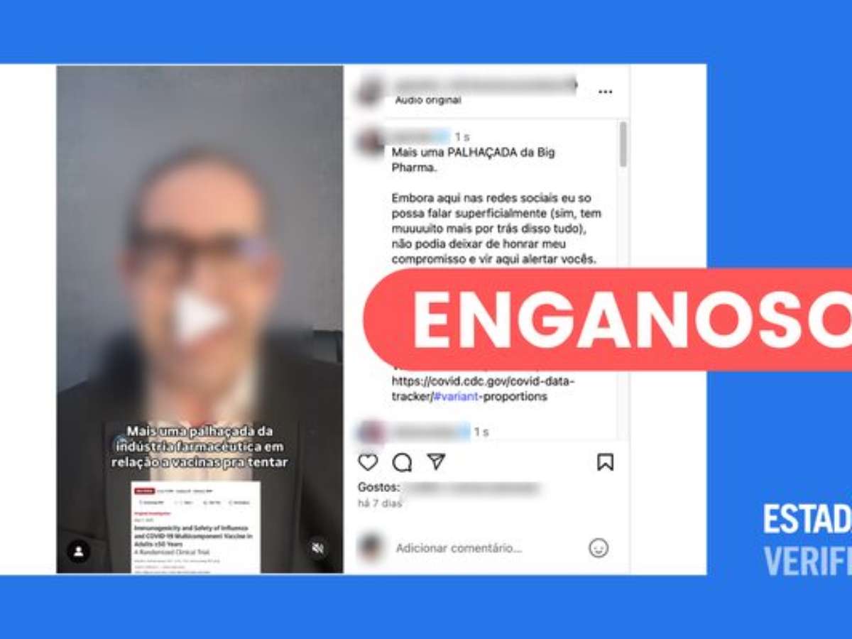 O Estadão Verifica investigou e concluiu que: é enganoso. O autor do vídeo omite informações importantes sobre o estudo da vacina mRNA-1083, desenvolvida pela farmacêutica Moderna. A vacina combina proteção contra influenza e covid-19.