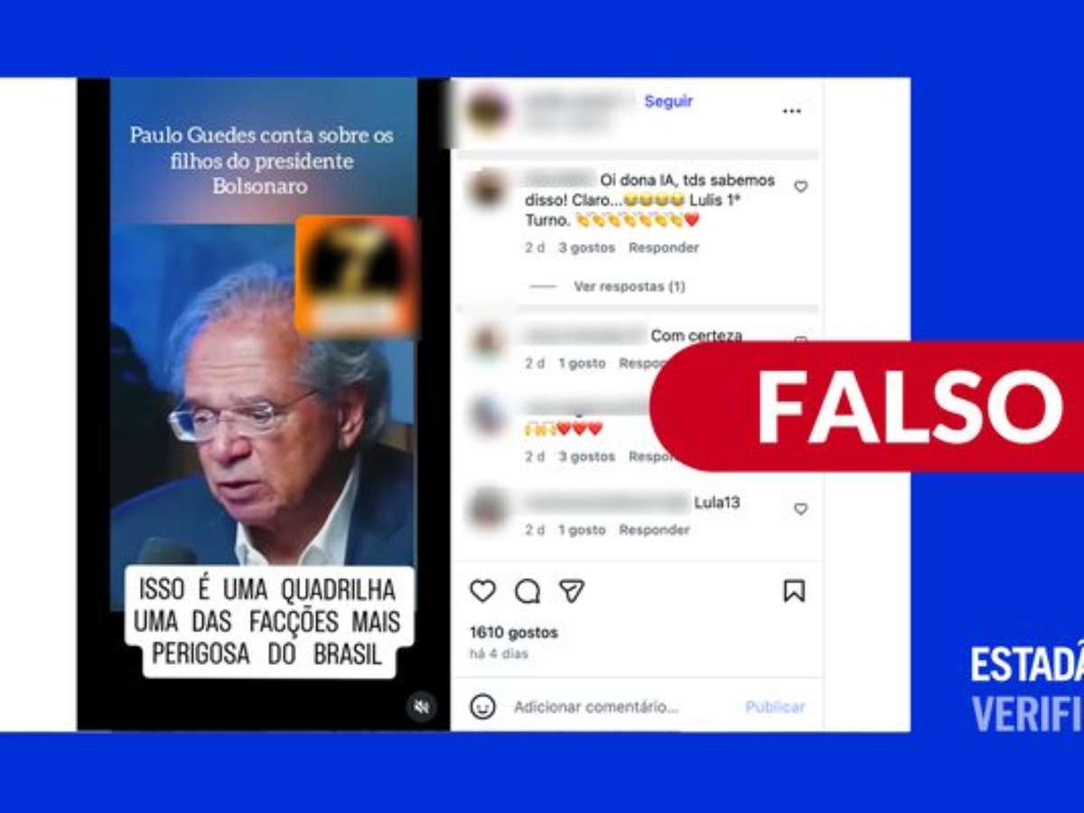 O Estadão Verifica investigou e concluiu que: é falso. O conteúdo usa imagens reais de Paulo Guedes, mas um áudio que foi alterado com ferramentas de inteligência artificial, para parecer que ele disse algo que não disse. Na gravação original, o economista não cita Bolsonaro ou os filhos, Eduardo e Flávio.