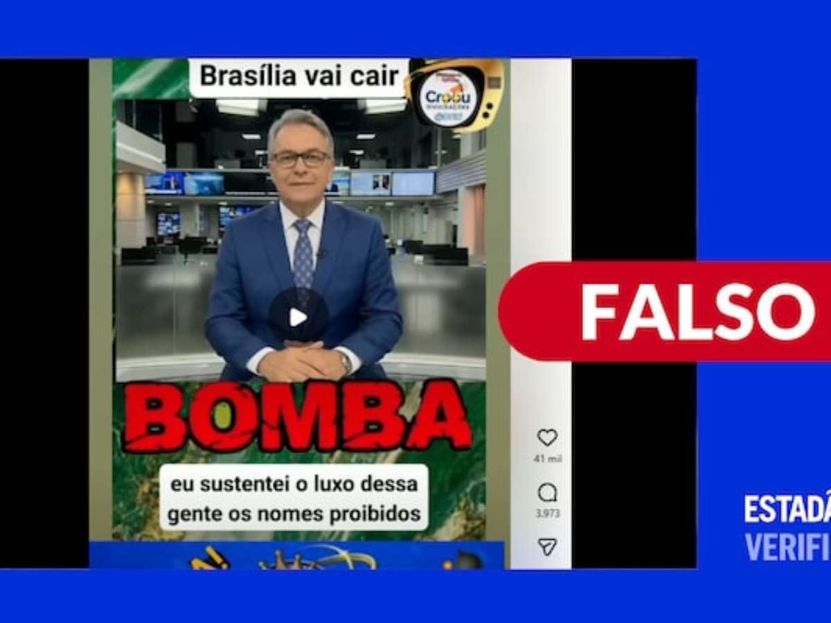 Saiba mais: o vídeo simula um telejornal. As imagens, no entanto, foram criadas por inteligência artificial. As características de manipulação são visíveis. O personagem de IA pisca os olhos mais lentamente que o habitual e tem a boca distorcida durante a movimentação dos lábios. As frases proferidas não respeitam o ritmo da pontuação.