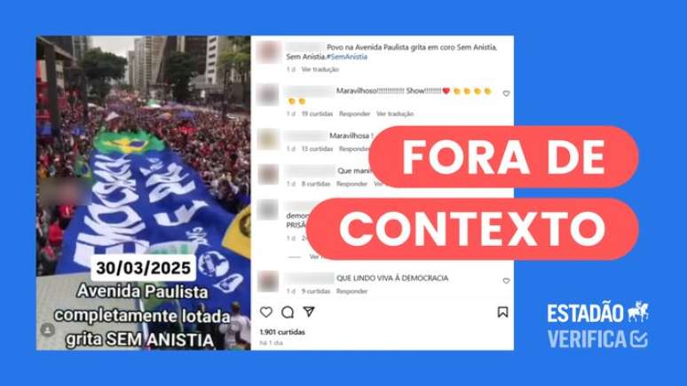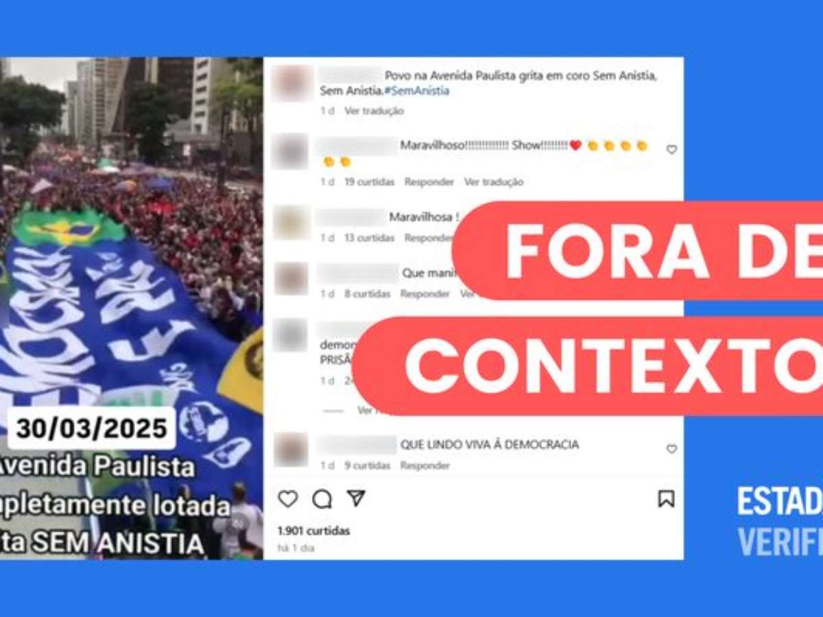 O Estadão Verifica investigou e concluiu que: está fora de contexto. As imagens são da Avenida Paulista e as pessoas de fato gritavam contra a anistia para os envolvidos nos atos antidemocráticos de 8 de Janeiro. No entanto, o vídeo foi feito em 9 de janeiro daquele ano, no dia seguinte à invasão das sedes dos Três Poderes, em Brasília (DF), e não no último domingo, 30.