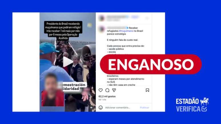 Saiba mais: na postagem, que tem 62,2 mil curtidas no Instagram, um homem afirma que o vídeo mostrado é da Operação Acolhida e que o Brasil está trazendo muçulmanos para morar no Brasil.