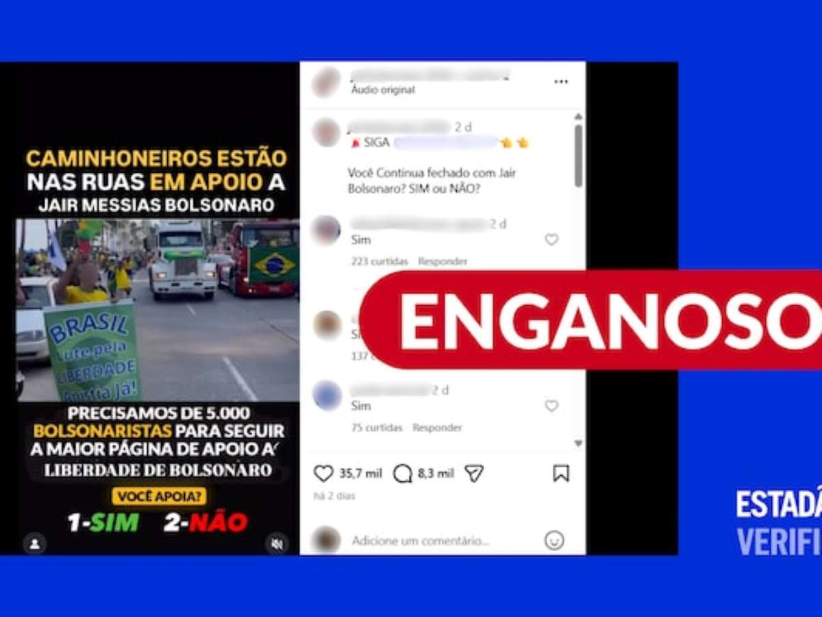 O Estadão Verifica checou e concluiu que: é enganoso. A gravação foi feita em uma manifestação no 7 de Setembro na Avenida Boa Viagem, em Recife (PE). Um dos donos de caminhão exibido no vídeo confirmou ao Verifica que a filmagem não é recente. Segundo a Polícia Militar de Pernambuco (PMPE), não houveram protestos nos últimos dias no local.
