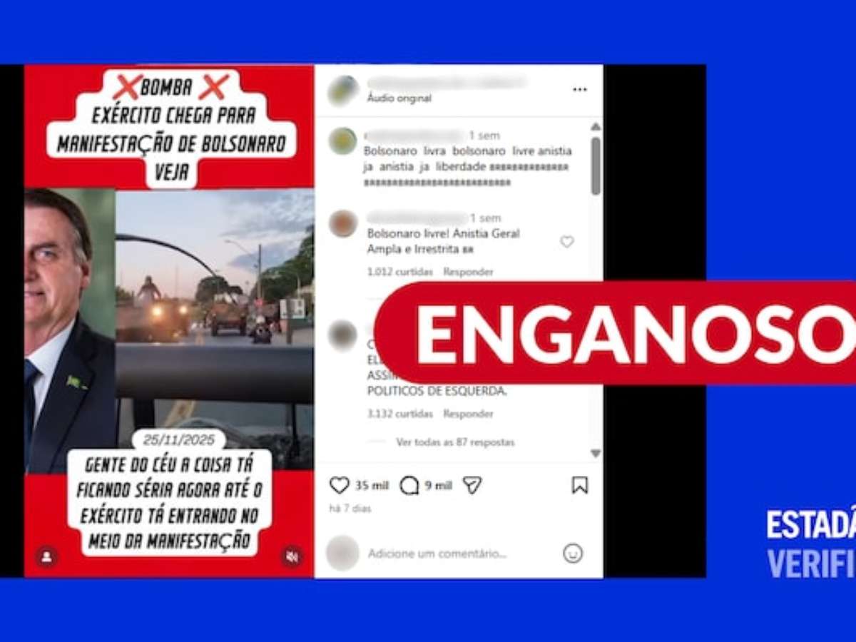 O Estadão Verifica checou e concluiu que: é enganoso. O vídeo foi gravado no ano passado em Taubaté (SP), durante a Operação Perseu, um exercício militar realizado no Vale do Paraíba. Em nota, o Exército Brasileiro negou que tenha ocorrido deslocamento de tropas para uma manifestação.