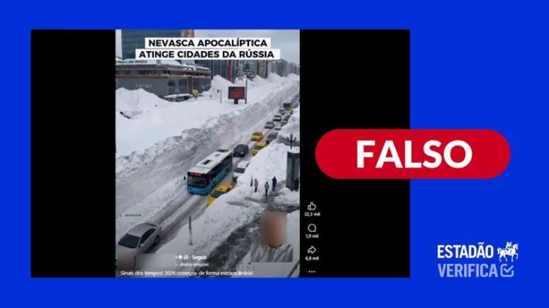 O que estão compartilhando: vídeo mostraria uma "nevasca apocalíptica" que teria atingido a Rússia. As cenas mostram enormes paredões de neve acumulada que ultrapassam o tamanho de um ser humano. Quem compartilhou o vídeo disse que em um dia nevou o equivalente a três meses.