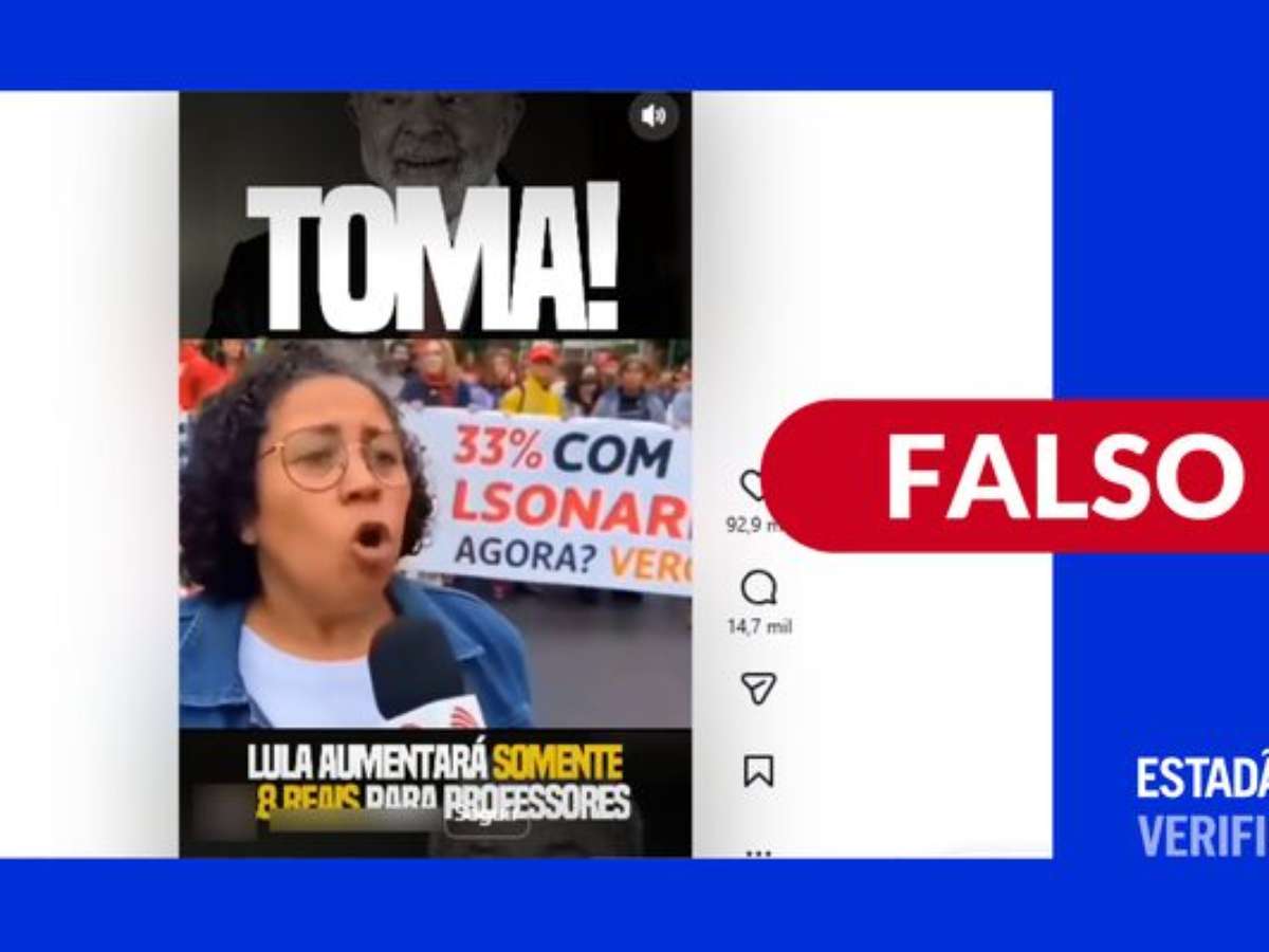 Saiba mais: publicado por diferentes perfis nas redes sociais, o vídeo falso levou usuários a acreditar que professores teriam ido às ruas para protestar contra o reajuste do piso salarial, estimado em 0,37% neste ano.