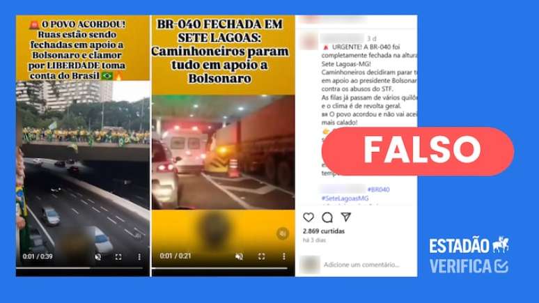 Nas redes sociais, essa gravação passou a circular como se mostrasse o início de uma greve na BR-040, em Sete Lagoas (MG). As postagens afirmam que a via teria sido fechada e que "caminhoneiros pararam tudo em apoio a Bolsonaro". Mas isso é falso.