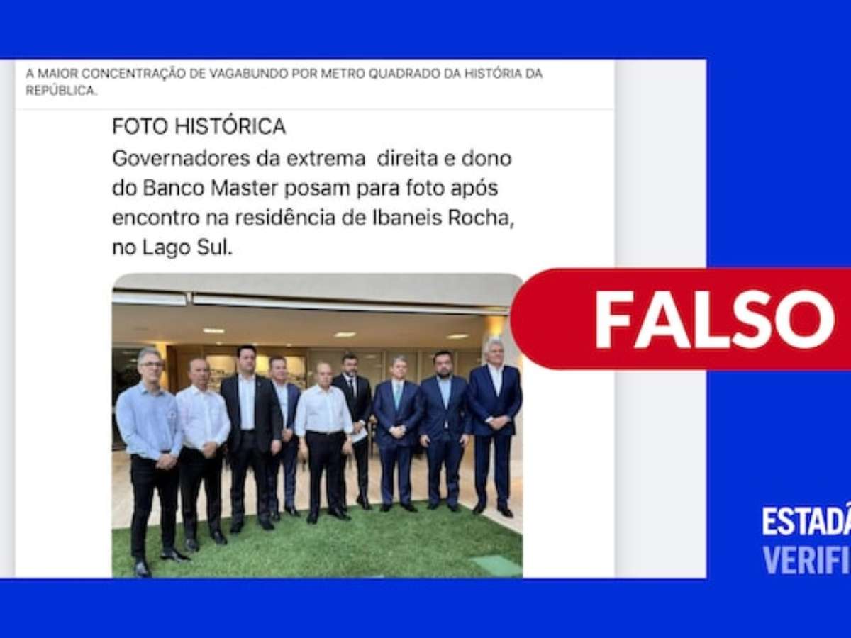 O que estão compartilhando: que o dono do banco Master, Daniel Vorcaro, teria tirado foto com oito governadores, incluindo o de São Paulo, Tarcísio de Freitas (Republicanos). O encontro teria acontecido na residência do governador do Distrito Federal, Ibaneis Rocha (MDB).