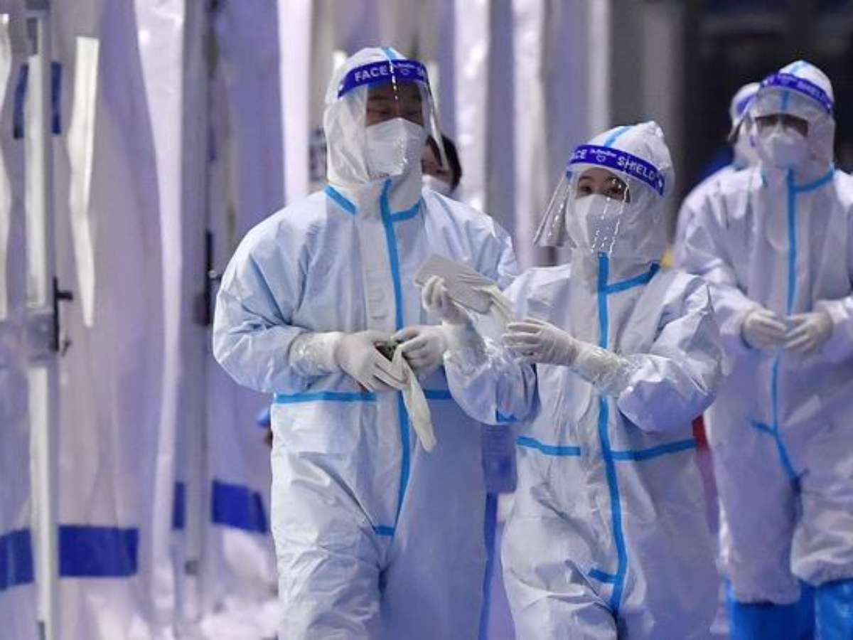 Funcionários do setor de saúde em laboratório de testes em Xi'an, no norte do país