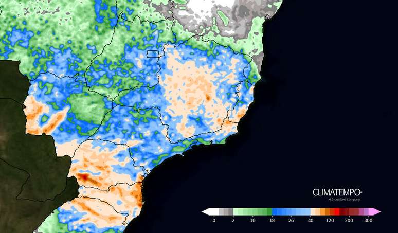 Figura 1 - Acumulado de chuva esperado entre 10 de outubro de 14 de outubro. Fonte: Climatempo